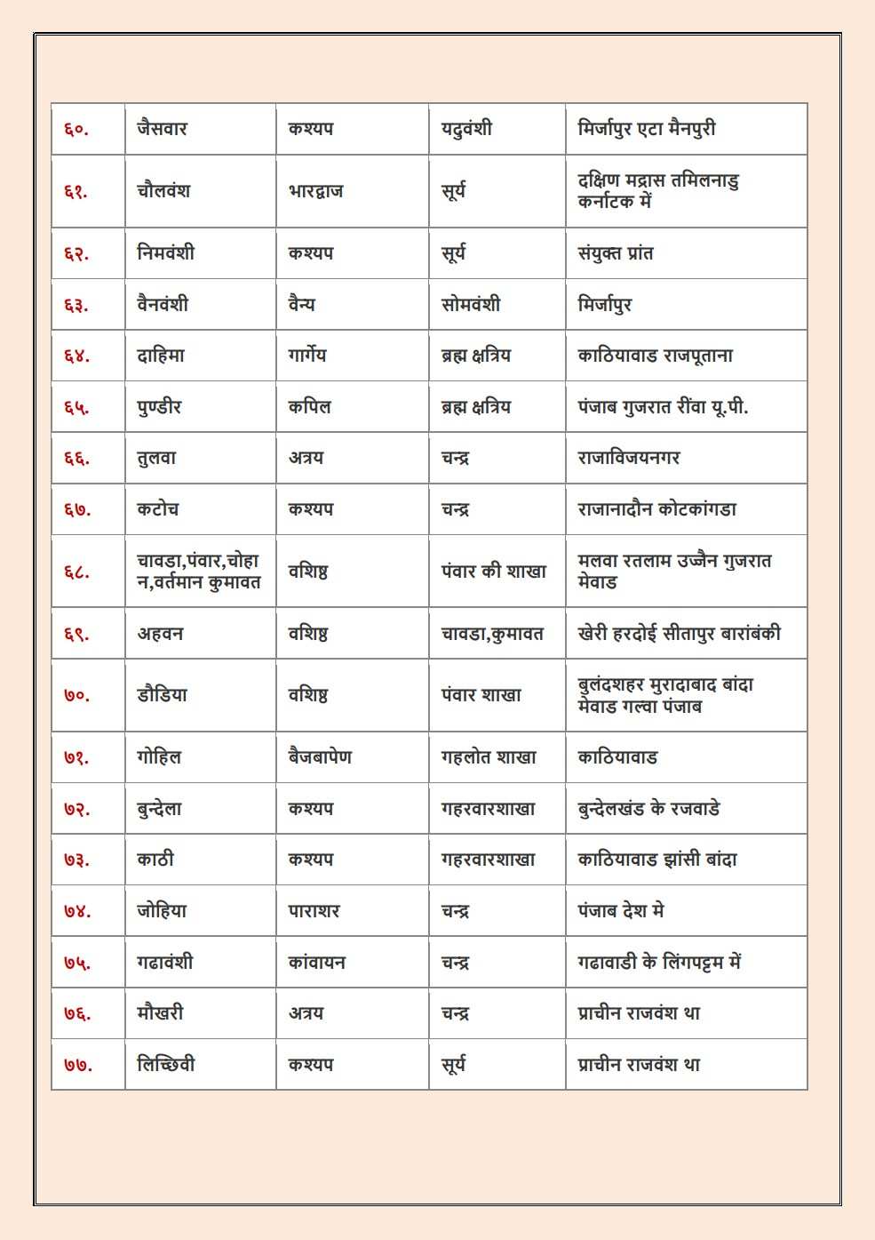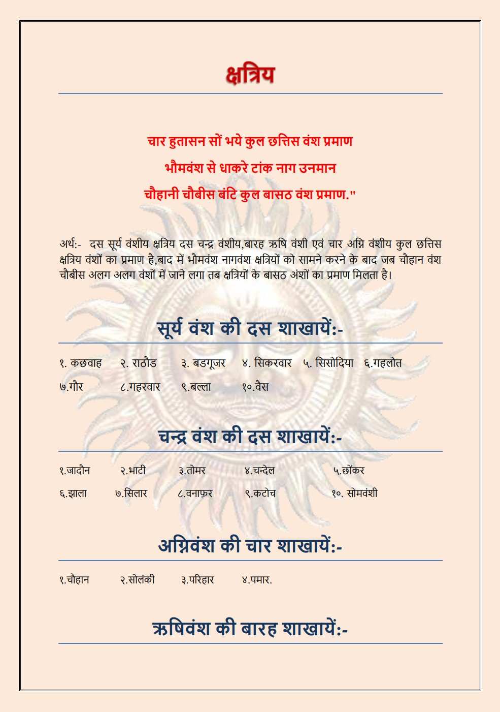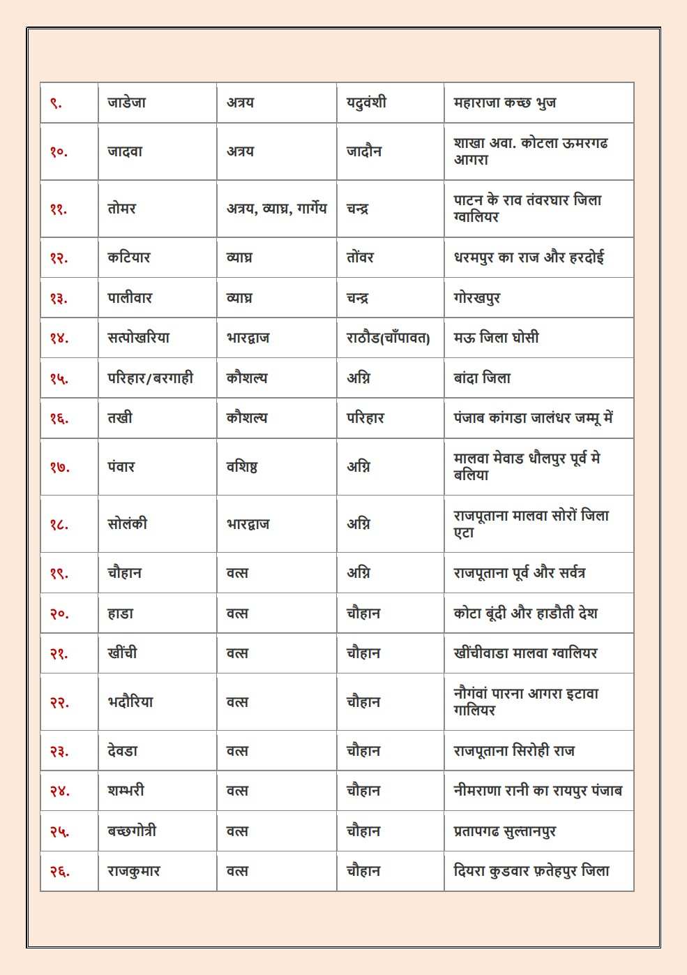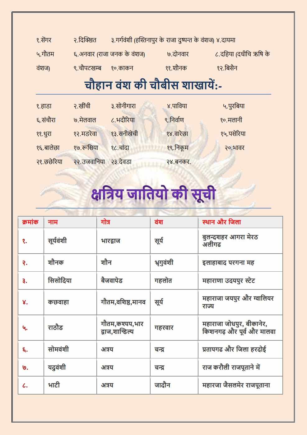Chauhan [Hada,Vasta,Devda,Bhadauriya,Khinchi] |